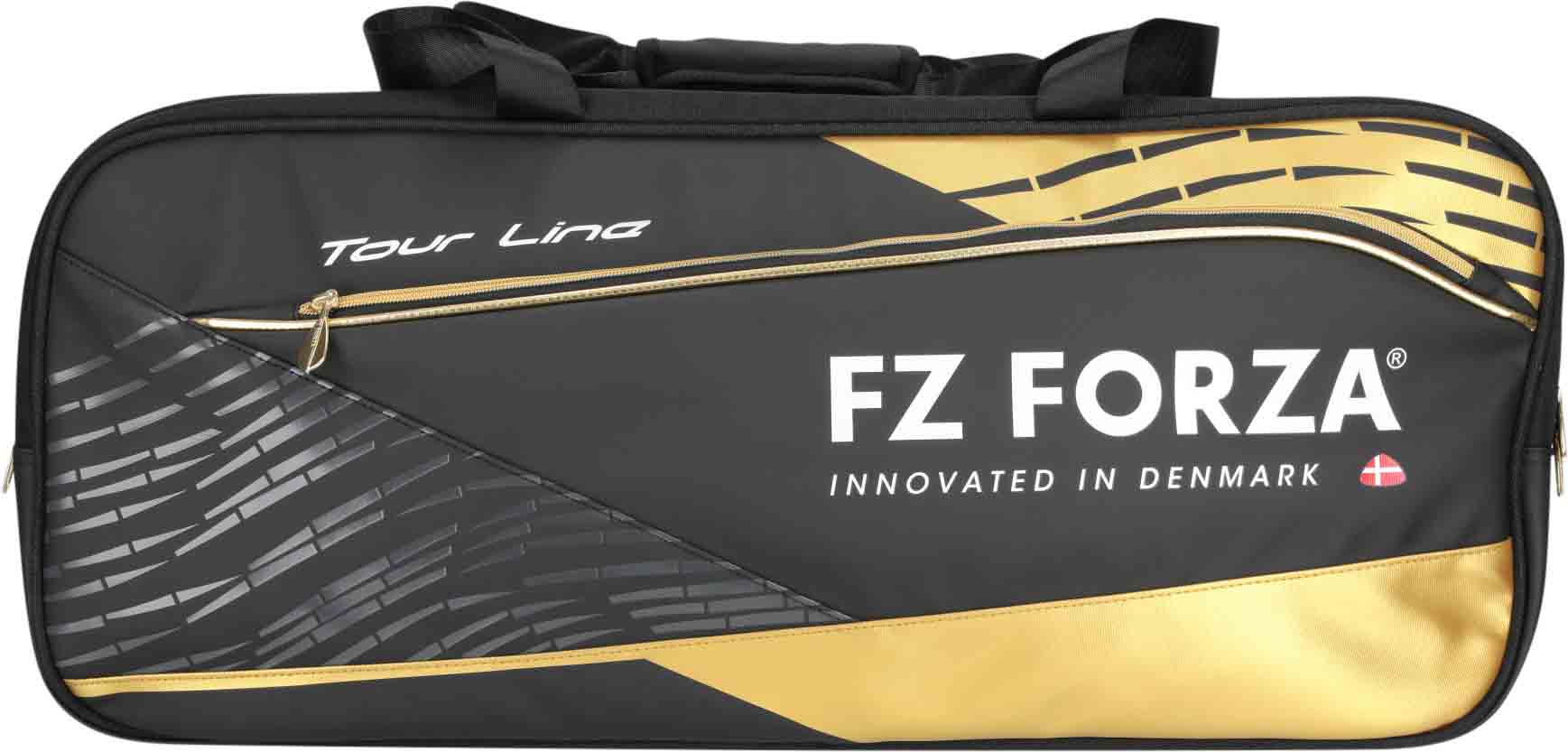Mit den zwei stabilen Tragegriffen lässt sich die FZ FORZA Tour Line Square 2031 Black/Gold bequem transportieren. Egal ob in der Halle, im Training oder auf Reisen – die Tasche bietet hohen Komfort und einfache Handhabung. - Edles Schwarz-Gold-Design: