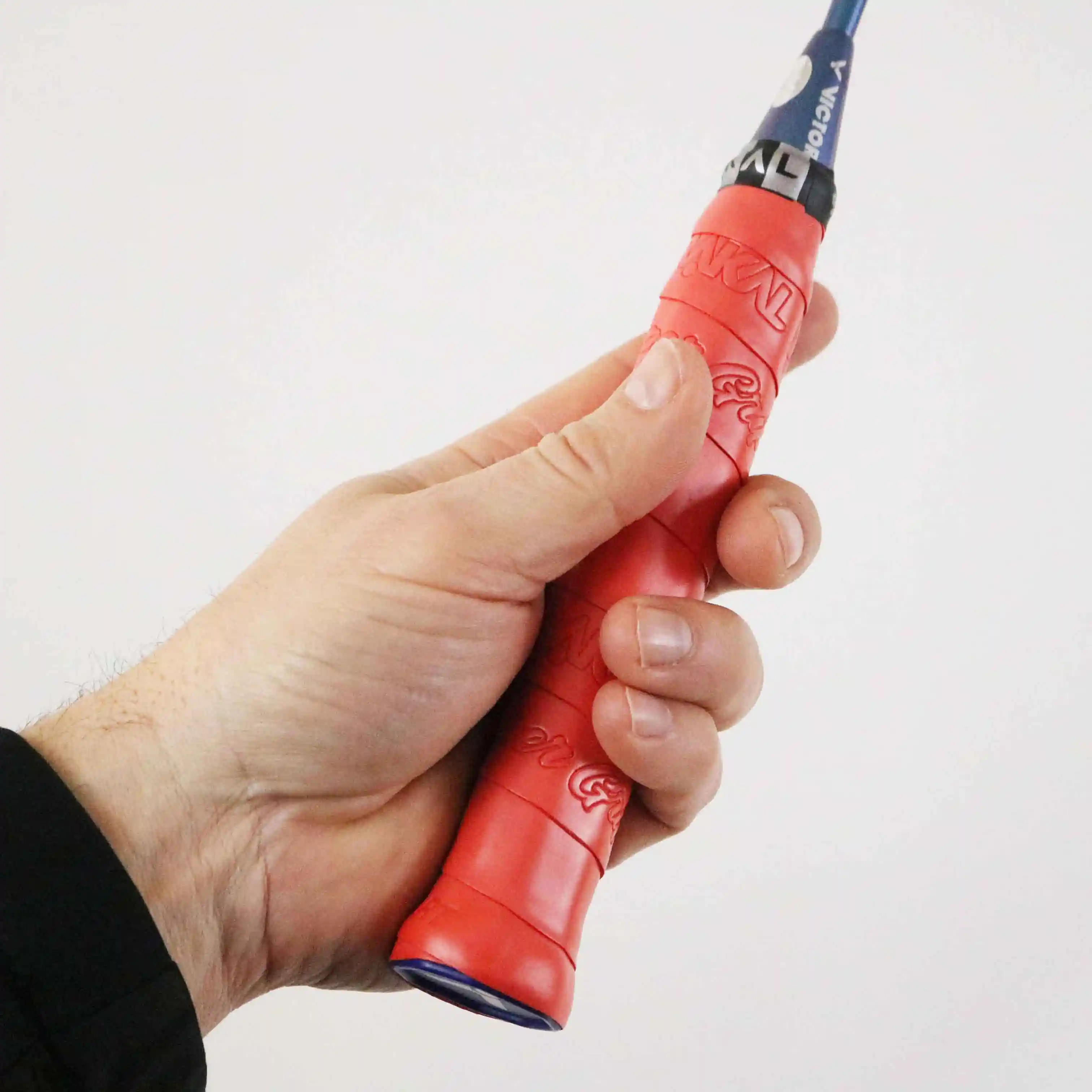 - Zwei Basisgriffbänder übereinander: Im Gegensatz zum Tennis, muss man beim Badminton schnell umgreifen können und insbesondere im Netzbereich viel mit lockerlassen-zufassen arbeiten. Ist der Griff zu dick, kann man nicht mehr schnell Umgreifen oder den Schläger lockerlassen und verliert in seinem Spiel an Druck und Flexibilität.